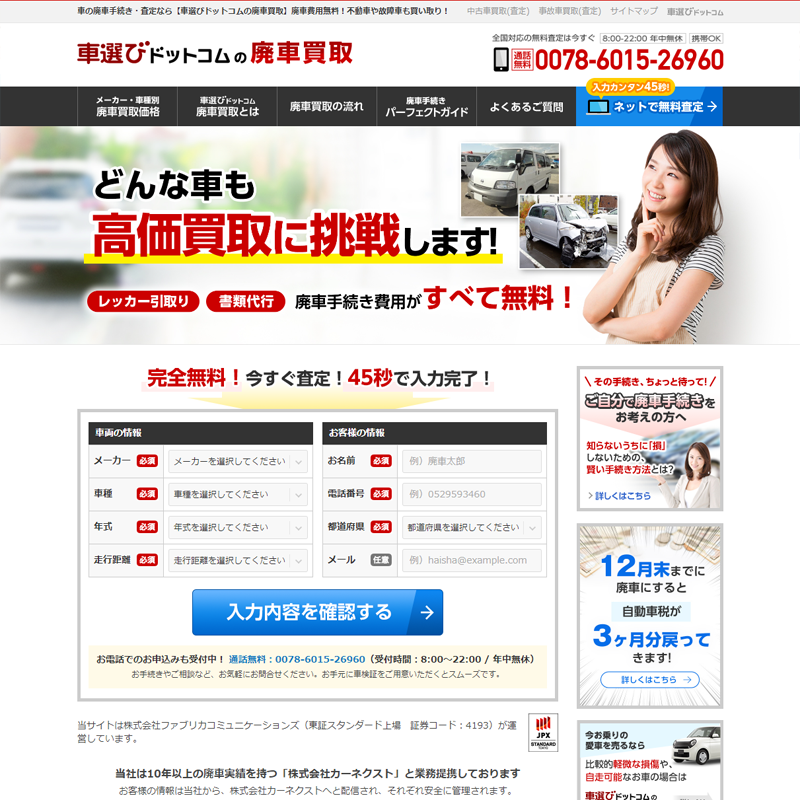 • レッカーなどの引取り費用や廃車の手続きにかかる書類の作成費用なども一切無料で対応