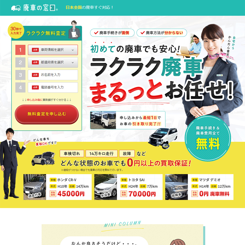 - 面倒なすべての廃車手続きや、日本全国指定場所までの引き取り、レッカーも無料で対応