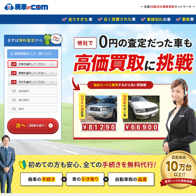 評価なし ✔全国の提携業者と連携 ✔パーツ・資源としてリサイクル ✔廃車費用すべて0円